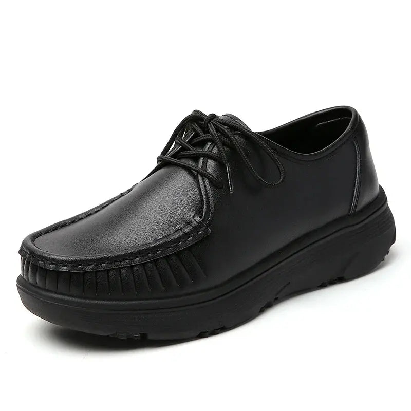 Les SecureStep Pro" Blanc Chaussures à plateforme pour infirmières de STRONGSHEN (modèle aigeWJ97-63) sont conçues pour vous, étudiantes infirmières, pharmaciennes ou professionnelles de santé d'âge mûr, qui méritez des chaussures alliant hygiène irréprochable et style sans effort : en croûte de cuir souple (doublure synthétique et semelle en caoutchouc antidérapante), elles offrent un talon bas (1-3 cm) qui allonge subtilement votre silhouette féminine sans fatigue, une fermeture à lacets pour un ajustement sur mesure, et une couverture. Pas au-dessus de la cheville pour une liberté totale - respirantes avec semelle en caoutchouc, idéales pour le printemps/automne, éliminant l'inconfort des chaussures lourdes qui frottent ou glissent pendant les tournées ou les promenades sur le campus.