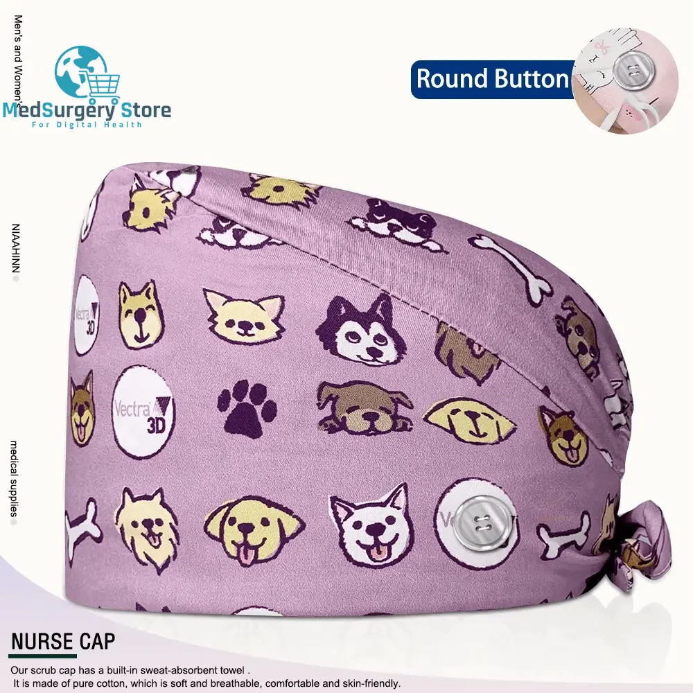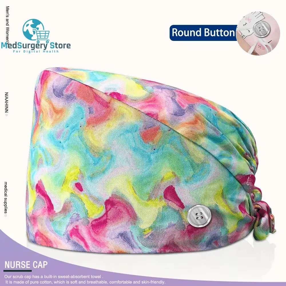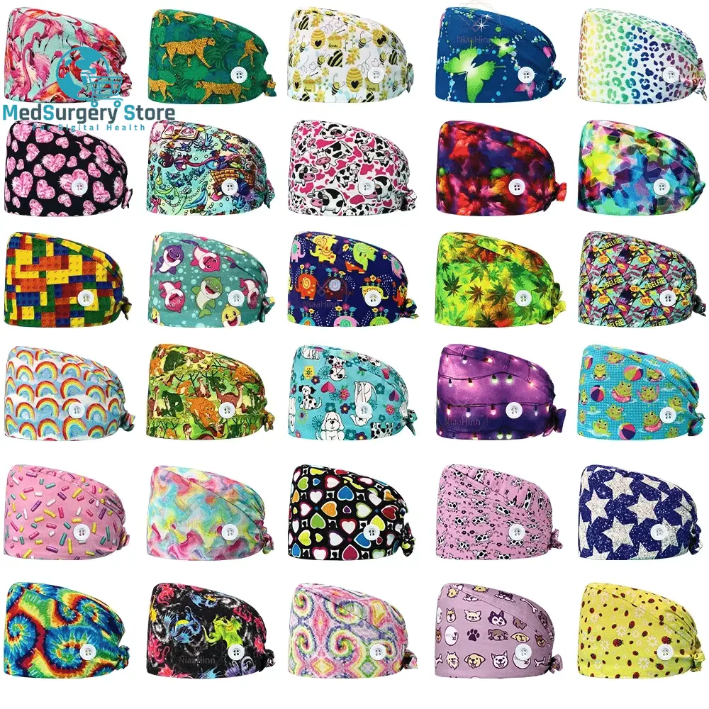 Wholesale Unisex Scrubs Cap Adjustable Cotton Printing Surgical Hats Nurse Uniform Accessories Hospital Beauty Store Work Caps
