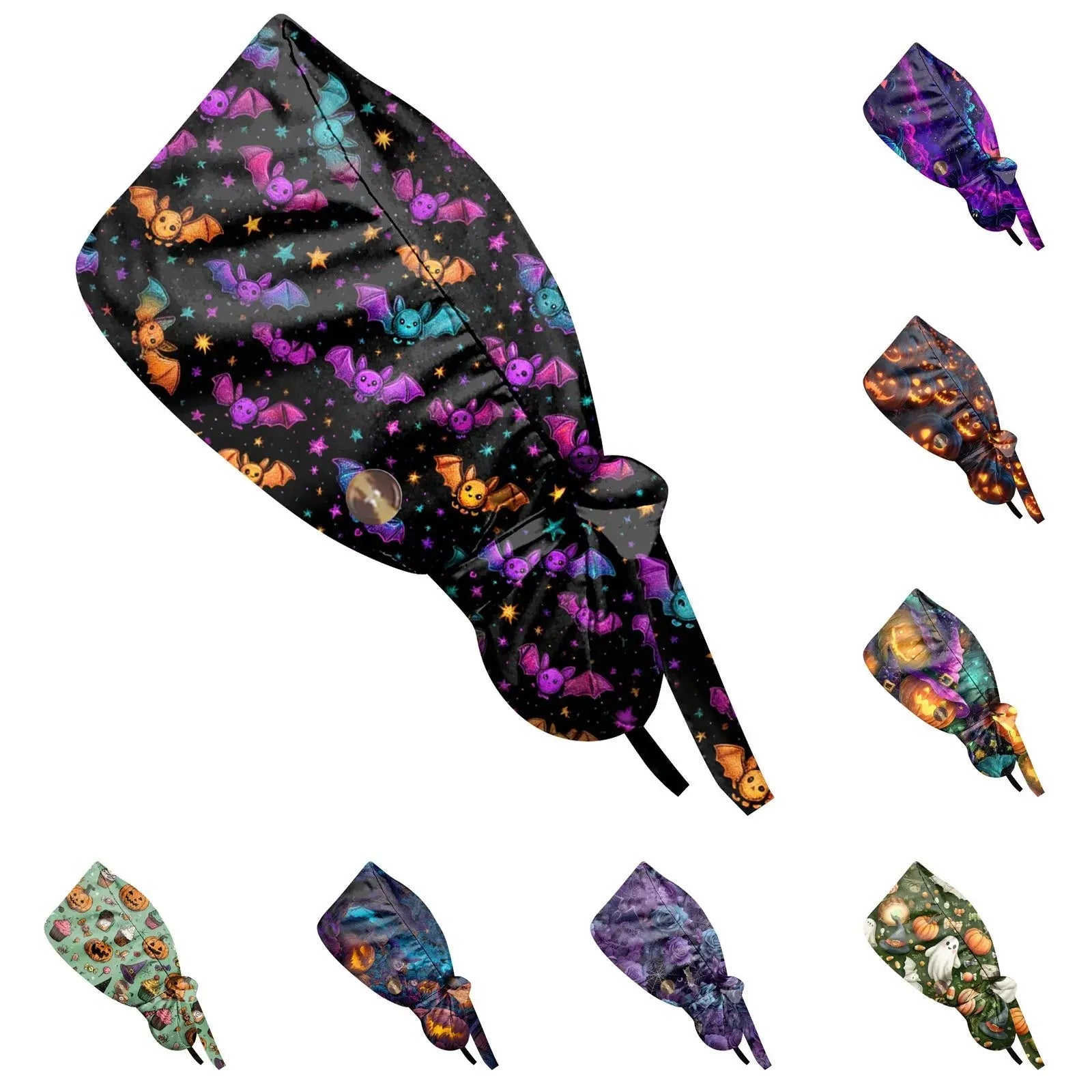 Casquette de chirurgie pour médecins ou infirmières avec impression d'Halloween - Casquette de chirurgie pour le travail médical. Fabriqué en coton, confortable et élégant.